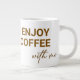 Ett jumbo stil-kaffe mugg med en chic minimalistisk brun textdesign med texten "Njut av kaffe med mig". Utformningen är anpassade, inklusive texten innehåll och färg. Om du vill göra det markerar du bara knappen "Redigera den här designen" och gör redigeringen i redigeringsavsnittet.