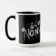 En viskartad design innehåller frasen "Njut av nonsens" omgiven av små, snabba dockor. De vita bokstäverna och skisserna skapar en ljusare atmosfär med en känsla av roligt och kreativitet.