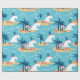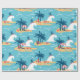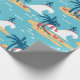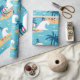 Alternativ utformning för Surfing Tecknad Illustration, Surfare som kör havsvågen och små tropiska öar i söt, enkel plan utformning med blå sommarpalett färg.Perfekt för Surfer Gift.