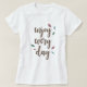Fjäderdesign "njut av din dag" fras dekorerad kalligrafi brev på kvinnor t-shirt.