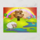 Tjud tecknad illustrerar Noahs ark som vilar på backe-toppen medan översvämningen vatten avtar och djuren börjar våga sig utanför. Bild finns tillgänglig på olika presenter och produkter. Vykort.