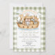 Fira din lilla en med denna mjuka och tidlösa Noaks ark baby shower inbjudan, med söta små djur samlade två och två i en mjuk akvarellstil. Den ljusgröna gingham-bakgrunden ger en mysig, modern och neutral touch - perfekt för föräldrar som älskar en naturlig och elegant estetik.