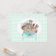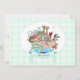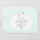 Noaks ark fullt med djur med akvamarin banner som lyder "Baby på väg!" på en mintgrön gingham bakgrund. Baksidan är en stork som bär en mintgrön knippa. Perfekt för Baby Shower, Baby Announcement, Dop eller Dåb.