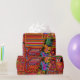 Noas ark mola, röd blå gul, julpresentpapper, Kuna indianskt papper, tribal folkkonst, etnisk folkkonst, bohemiskt papper, decoupagepapper, religiöst Noas ark, två och två, Virginia Vivier, Vagabond Folk Art, Kuna indiansk folkkonst.