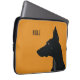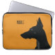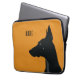 En minimalistisk utformning av laptop sleeve för hundägare eller älskare som har satts på gultens bakgrund. Utformningen inför en silhuett av en svart Doberman tillsammans med standardtacket för anpassadet.