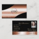 Visa elegans och innovation med den här klassens visitkortsmall. Utformningen av ro guld färg på svart med bra ro guld kurvformad deka linjer. Anpassa enkelt det här affärskortet till ditt varumärke, din logotyp och ditt (medarbetarens) foto. Allt du ser är faux ro guld-folie, men en högkvalitativ utskrift. ♡ av DIN FAVORITE - Utformning:-) Modern och professionell affärsvaror. ♡ jag önskar er lycka till med denna punkt. ♡ www.zazzle.com/store/your_favorite ♡ www.zazzle.com/store/favorite_markeplies ♡