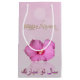 Noble, elegant Persian New Year illustration: A rosa hibiscus bloom nyår önskemål på engelska och farsi på båge.