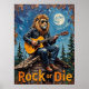 Den här infångande målningen har en lejon, komplett med solglasögon och läder jacka, djupt nedsänkt i en "nokturne sten" sylt på en elektrisk gitarr. Han är balanserad på ett tak av trä, med ett starkt måne och mörk gräs träd som skapar en dramatisk bakgrund av natt. Det pulserande, texturerade borsverket skapar en livlig och upplivande atmosfär, som perfekt förmedlar "Sten eller Die"-vippen för denna unika prestanda.