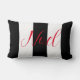 Den här helgdag lumbalkudden har ord "Noel" i röd skripttext på ett mönster av tjockt svart och vitt lodrät rand.