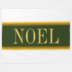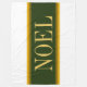 Den här färgstarka helgdag har ett stort centrum för vågrät av grönt i skogen, rand som beskrivs i guldfärgad gult och brunt streck mellan vita yttre ränder. Den valfria NOEL-texten, om den används, kan vara personlig.