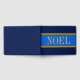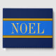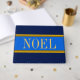 Festive golden gult och Brown streck högdagrar vackra "NOEL" i elegant typografi som fyller royalets blå mittpunkt rand i designen. Bred marinblå rand över och under. Fyll i festitersammansättningen. Texten kan vara personlig.