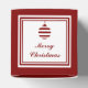Klassisk ruta för julfest med en röd och vit roligt NOEL-textutskrift och en strimlad julformad design framtill och överst och en röd och vit ruta med personlig textmeddelande på baksidan. Matchande juldekoration i party finns.