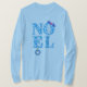 "Noel" i hälsning, mönstrad med retromodernt Julgranar i isblått skugga, förskönad med en hollissprit och en snöflammande ornament