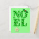 Vykort med "Noel" i hälsning, mönstrat med retromodernt Julgranar i skuggor av grönten emerald, förskönat med en smak och en stjärndekoration