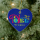 En djärv, vacker julprydnad som passar både Fransk och engelska vänner! Den har en ljusstark färgad Noël, skriven i funky typsnitt och med en myllös, sitta, i midnattsblå bakgrund. Julstjärnan vrider runt jorden.. Byt familj namn till kostym.