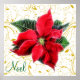 Denna brokiga poinsettia-blomma mot bakgrund av guldvinerna gör en elegant juldesign. "Noel" skrivs ut i det nedre lämnat hörnet i ett teckensnitt för grönt av elegant.