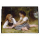 Den varma hösten sol gick genom löven av hasselnöten träd och kastade dansskuggor på golv. Två unga flickor, Elise och Juliette, satt under sitt grenar, en liten hög av gyllene nöt, som hamnade bland de fallna löven. - Elise, de två äldres ledare, lutade mot råbarken i träd, ett eländigt glatt i hennes ögon. Hon höll en handfull nöt som teasymmetriskt över Juliettes huvud. "Försök att fånga dem, petite souris!" "Hon kröpte, spränger nöt med en glad gigg." - Juliette, en piskvind av rörelse, jagad efter det fallande nöt, hennes skratt ekar genom skogen. Hon gjorde en handfull fräckhet, och hennes ansikte spolade med ansträngning och glädje. "Du är omöjlig, Elise!" sa hon, hennes röst andlös. - Elise grinned, hennes ögon crinkling i hörnen. "Det är tanken, morsa petite!" retorterade hon och kastade några nöt till luft. - De tumlade och valsade bland löven och skrattade åt träd:s skonsamma rostning. För ett ögonblick verkade världen krympa till bara de två, borttappad i deras eget privata spel. - Juliette, som tog andedräkten, tittade runt på det nedbländade solljuset genom löven. "Det är så vackert här," hon såg innehållslöst. "Jag önskar att vi kunde stanna här för evigt." "Jag också", erkände hon. "Det är som en hemlig trädgård." - De tystade, innehåll i varandras sällskap och skogen fredliga lugn. Elise, drömmaren, började föreställa sig vad de skulle göra med sina skatter. "Vi kanske kan rosta dem över branden," "och berätta historier hela kvällen." - Juliettes ögon breddade sig. "Eller kanske vi kan göra ett halsband för Grand-Mère", sa hon, hennes röst fylld av upphetsning. "Hon hasselnöthalsband i kärlek." - När sol började dyka under horisonten och kasta långa skuggor över golv, samlade flickorna motvilligt sitt nöt och började ta sig hem. De gick hand i hand, deras skratt smällde in i avstånd och lämnade bakom en bana med gyllene löv och den kvardröjande skygglappet på hösten. - skogen, gång vid liv med sin lekande schatter, återvände till sitt fredliga slumpar, det enda ljud som den milda viskaren av vinden genom träd. Men minnet av deras skratt, som skogsmokens scent, stannade långt efter det att de var borta, en påminnelse om barndomens enkla glädjeämnen och en gemensam hemligas bestående magi. - Les Noisettes eller The Nöt Gatherers är en 1882-oljemålning av den Fransk konstnären William-Adolphe Bouguereau. Detta arbete är offentligt i land i ursprung och andra land och i områden där upphovsrätten är upphovsmannens livstid plus 100 år eller mindre.