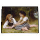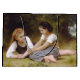 Den varma hösten sol gick genom löven av hasselnöten träd och kastade dansskuggor på golv. Två unga flickor, Elise och Juliette, satt under sitt grenar, en liten hög av gyllene nöt, som hamnade bland de fallna löven. - Elise, de två äldres ledare, lutade mot råbarken i träd, ett eländigt glatt i hennes ögon. Hon höll en handfull nöt som teasymmetriskt över Juliettes huvud. "Försök att fånga dem, petite souris!" "Hon kröpte, spränger nöt med en glad gigg." - Juliette, en piskvind av rörelse, jagad efter det fallande nöt, hennes skratt ekar genom skogen. Hon gjorde en handfull fräckhet, och hennes ansikte spolade med ansträngning och glädje. "Du är omöjlig, Elise!" sa hon, hennes röst andlös. - Elise grinned, hennes ögon crinkling i hörnen. "Det är tanken, morsa petite!" retorterade hon och kastade några nöt till luft. - De tumlade och valsade bland löven och skrattade åt träd:s skonsamma rostning. För ett ögonblick verkade världen krympa till bara de två, borttappad i deras eget privata spel. - Juliette, som tog andedräkten, tittade runt på det nedbländade solljuset genom löven. "Det är så vackert här," hon såg innehållslöst. "Jag önskar att vi kunde stanna här för evigt." "Jag också", erkände hon. "Det är som en hemlig trädgård." - De tystade, innehåll i varandras sällskap och skogen fredliga lugn. Elise, drömmaren, började föreställa sig vad de skulle göra med sina skatter. "Vi kanske kan rosta dem över branden," "och berätta historier hela kvällen." - Juliettes ögon breddade sig. "Eller kanske vi kan göra ett halsband för Grand-Mère", sa hon, hennes röst fylld av upphetsning. "Hon hasselnöthalsband i kärlek." - När sol började dyka under horisonten och kasta långa skuggor över golv, samlade flickorna motvilligt sitt nöt och började ta sig hem. De gick hand i hand, deras skratt smällde in i avstånd och lämnade bakom en bana med gyllene löv och den kvardröjande skygglappet på hösten. - skogen, gång vid liv med sin lekande schatter, återvände till sitt fredliga slumpar, det enda ljud som den milda viskaren av vinden genom träd. Men minnet av deras skratt, som skogsmokens scent, stannade långt efter det att de var borta, en påminnelse om barndomens enkla glädjeämnen och en gemensam hemligas bestående magi. - Les Noisettes eller The Nöt Gatherers är en 1882-oljemålning av den Fransk konstnären William-Adolphe Bouguereau. Detta arbete är offentligt i land i ursprung och andra land och i områden där upphovsrätten är upphovsmannens livstid plus 100 år eller mindre.