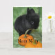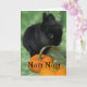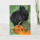 Detta kort presenterar en gullig lite kanin med hans Halloween pumpa.