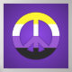 Pink poster with the peace symbol in the colors of the non-binary pride flag. A yellow, white, purple, and black sign on a purple background