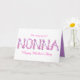Söt Nonna-texttecknet, orden Nonna, färgad i lila och vriden med söta rosa eller blommor. Det här visuella kortet kan anpassas med ditt eget meddelande och ditt eget val av hälsning inuti. Det här kortet finns även på andra produkter. För närvarande läser man utanför, till en mycket speciellare NONNA Lycklig Mors dag och insidan läser, tänker på dig och önskar dig en underbar dag av kärlek. © Originalvattenfärgskonst och -design av Sarah Trett. www.sarahtrett.com för www.mylittleeden.com