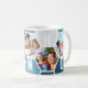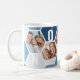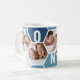 Honeycomb-kaffe mugg, personlig med 5 av dina favoritfoton och utskrivet med 5 brev namn, till exempel NONNO. Utformningen har en honeycomb-fotokollage i en färg-palett med blått och grått. Om du vill ändra färg klickar du på "anpassa ytterligare" och klickar på varje hexagon som du vill ändra.