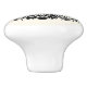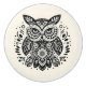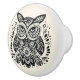 Den här söta keramiska knoppen illustrerar en grumpy horned uggla som i nordisk folkkonst stil framställs svart på elfenbensbakgrund.