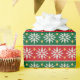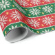 Scandinavian-inspired faux-knit pattern of snowflakes, diamonds, and festive stripes in red, green, white, and gold.