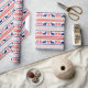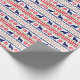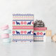 The repeated pattern on this colorful Christmas Nordic sweater style gift wrapping paper is a silhouette American Cocker Spaniel dog among snowflakes , trees, and geometric designs. Colors include navy blue, bright Holiday green, and red, all on a white background.