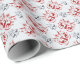 En invecklad grupp blommor, fåglar, renar, snöflingor, träd och andra växter.. i klassisk färg av rött och blått grått, inspirerad av traditionell nordisk folkart, lägger till denna skandinaviska pappra julomslutning.