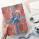Nordisk Grönt och Vita Träd Mönster på Röd Presentpapper