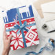 Traditionell Skandinavien mönster av roligt snöflingor och pixelrenar
