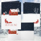 Pastellerna ritade Skandinavian Rustic snowy red ladan och rödräv mot en oren mörk snövy natt himlar. Den omgivande grafiken fortsätter på insidan och baksidan av det här kortet skapar den som en helgdag.