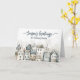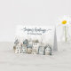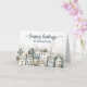 Skicka dina högtidliga hälsningar till dina vänner, familj, kollegor och nära och kära med detta vackra skandinaviska kort. Detta kort visar en by med nordiska hus i en fantasifull akvarelldesign. Nyanser av blått och neutrala färger ger detta kort dess snöiga vinterkänsla perfekt för att fira julen.