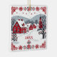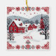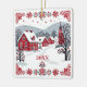Denna festliga och nostalgiska prydnad visar en snöby i en nordisk eller nordiska stil-design. Färg är rött, vitt, grått och svart. Den kan anpassas med ett år eller annan text på framsidan och med en hälsning och ytterligare text på baksidan.