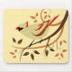 Stiliserad konst på hösten färg av norrut, honlig kardinal på dekorativt snurra gren med löv