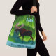 En aldrig så stiliserad bild av en mosa som silhuetterades mot norra Ljus. Texten "Alaska" står i blått och vitt. Lägg till ytterligare text.