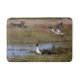 Ett litet damm med nordliga pintailankor. Två har tagit stativ för flyg och för en third i grunt vatten.