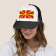 Flagga i NordMakedonien skildrar en stiliserad gult sol på ett rött fält, där åtta breddgrader sträcker sig från mitten till kant i fält. Det skapades av Miroslav Grčev och antogs den 5 oktober 1995.