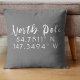 Säsong dekorativ kudde med nordpolens longitud och latitud. Vitt teckensnitt på grått-bakgrund