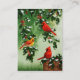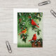 Ett par manliga och hona norrut kardinaler i ett holly träd, medan en tredje kardinal sitter på ett träträ av basket fyllt med nyplockat grovt löv och bär. Bilden skapades från en ursprunglig oljemålning av Crista Forest.