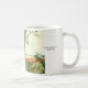 Ett vitt kaffe mugg med en bild av stranden vid Wells bredvid havet, på Norfolk Kusten i Storbritannien, från en mjuk pastellmålning av Judy Adamson. Kortet finns också tillgängligt.
