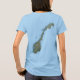 På framsidan av denna t-shirt visningar man djärvt den norska flagga med dess distinkta, vita, fimbriserade förskjutningsblått kor mot röd bakgrund. Detta motsvaras bakåt av en attraktiv karta av Norge.