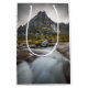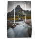 Detta är ett landskapsfoto av ett litet vattenfall och ett vackert berg på Lofoten-öarna i norra Norgen, Skandinavien. Fotoplats: Flakstadøya.
