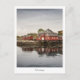 Landskapsfoto av traditionella rödbåtshus av trä kusten i Norge, Skandinavien.