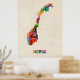 Norge Watercolor Karta Poster