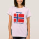 På bekläda av denna skjorta medföljer en redigerbar titel och slogan den norska flagga med dess fimbriated offset- blåttkor för vit på rött. Baksidaen visar en specificerad karta av norgen.
