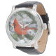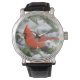 Norra kardinalen i Balsam fir träd under vintern Armbandsur