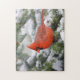 Norra kardinalen i Balsam fir träd under vintern Pussel