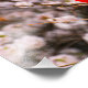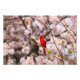 En nordlig kardinalfågel (kardinalis cardinalis) som genomborrades på träd gren med rosa blommar av körsbär i bakgrunden.